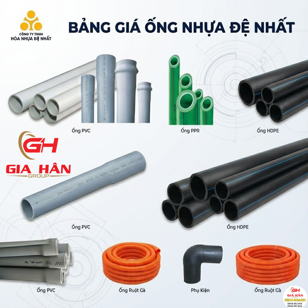 2. Bảng Giá Ống Nhựa Đệ Nhất 2026 (Cập Nhật Đầy Đủ uPVC-PPR-HDPE)