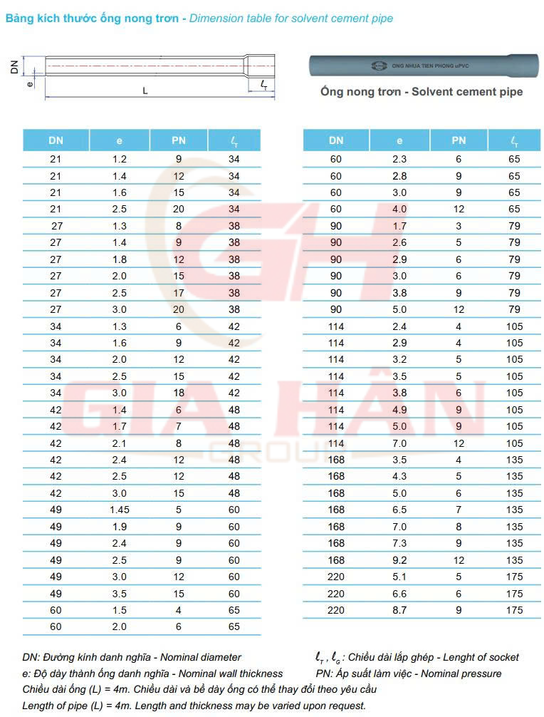 Chi Tiết Thông Số Kỹ Thuật Catalogue uPVC Tiền Phong