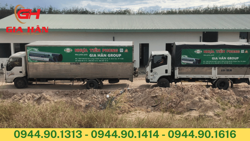 - Gia Hân Group sở hữu 20 chiếc xe tải giao hàng từ 2 tấn đến 11 tấn, đảm bảo việc vận chuyển hàng hóa nhanh chóng và an toàn đến mọi miền đất nước, với hệ thống kho bãi chưa hàng rộng 1000m² của Gia Hân Group luôn được quản lý và bảo quản theo tiêu chuẩn nhà sản xuất, đảm bảo chất lượng sản phẩm trước khi đến tay khách hàng.