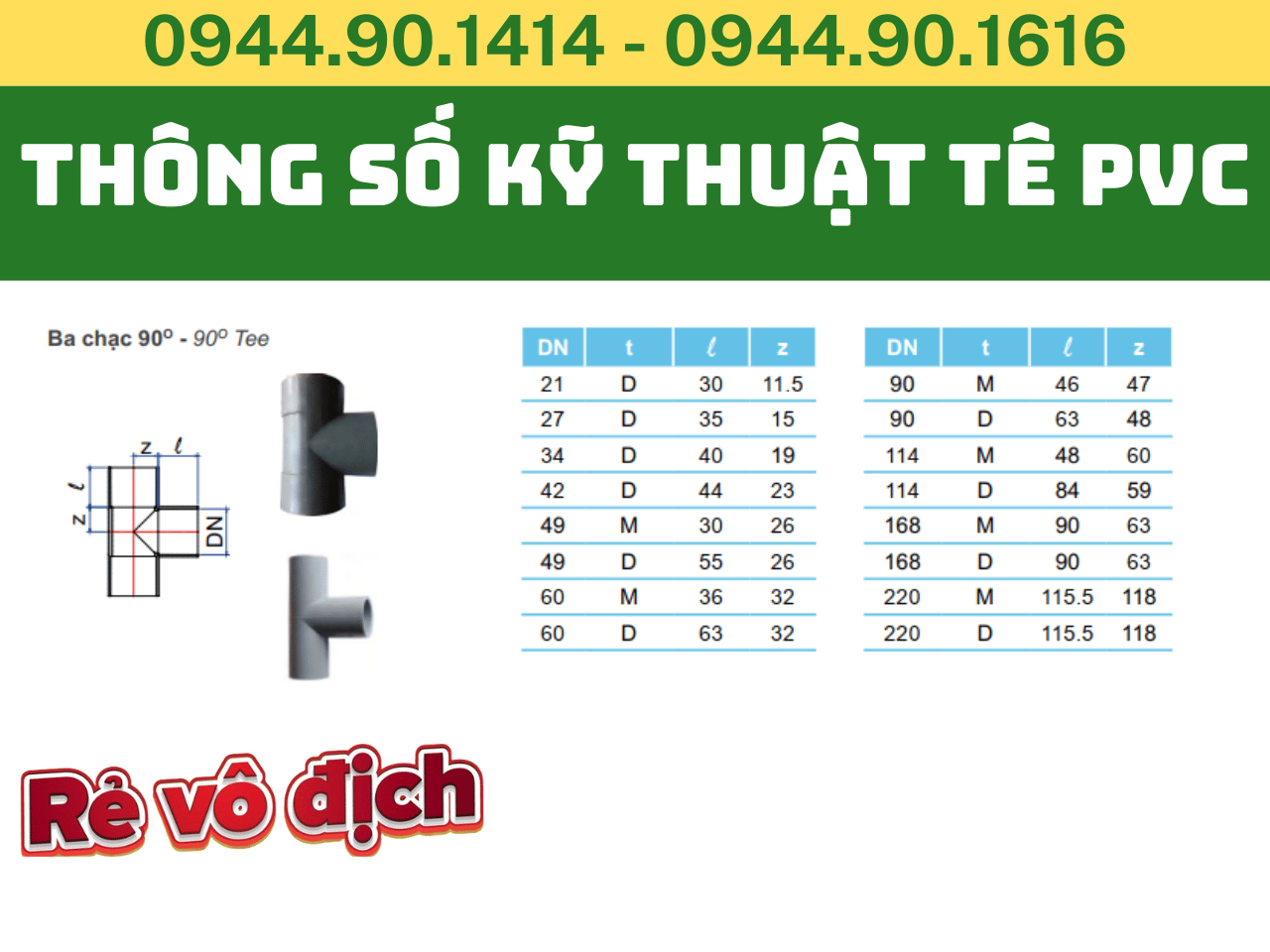 Để lựa chọn đúng loại tê nhựa PVC D114, việc nắm rõ các thông số kỹ thuật là vô cùng quan trọng: