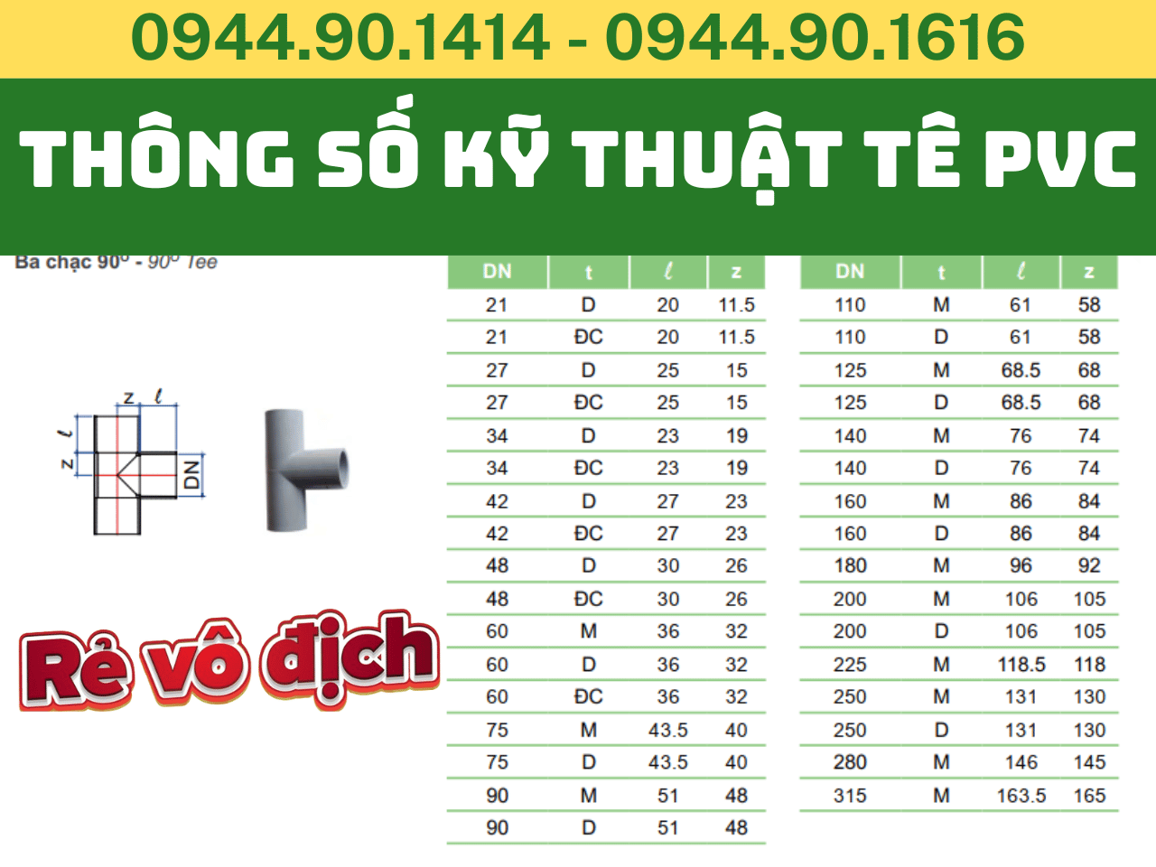 Để lựa chọn đúng loại tê nhựa PVC D140, việc nắm rõ các thông số kỹ thuật là vô cùng quan trọng: