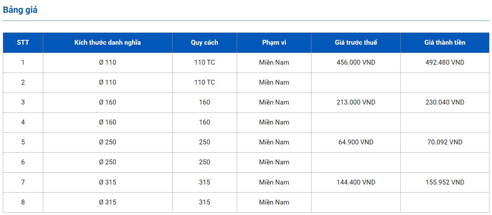 - Giá bán phụ kiện HDPE gân thành đôi phụ thuộc vào đường kính và độ cứng vòng (SN). Dưới đây là mức giá tham khảo (chưa bao gồm VAT và chiết khấu dự án):
