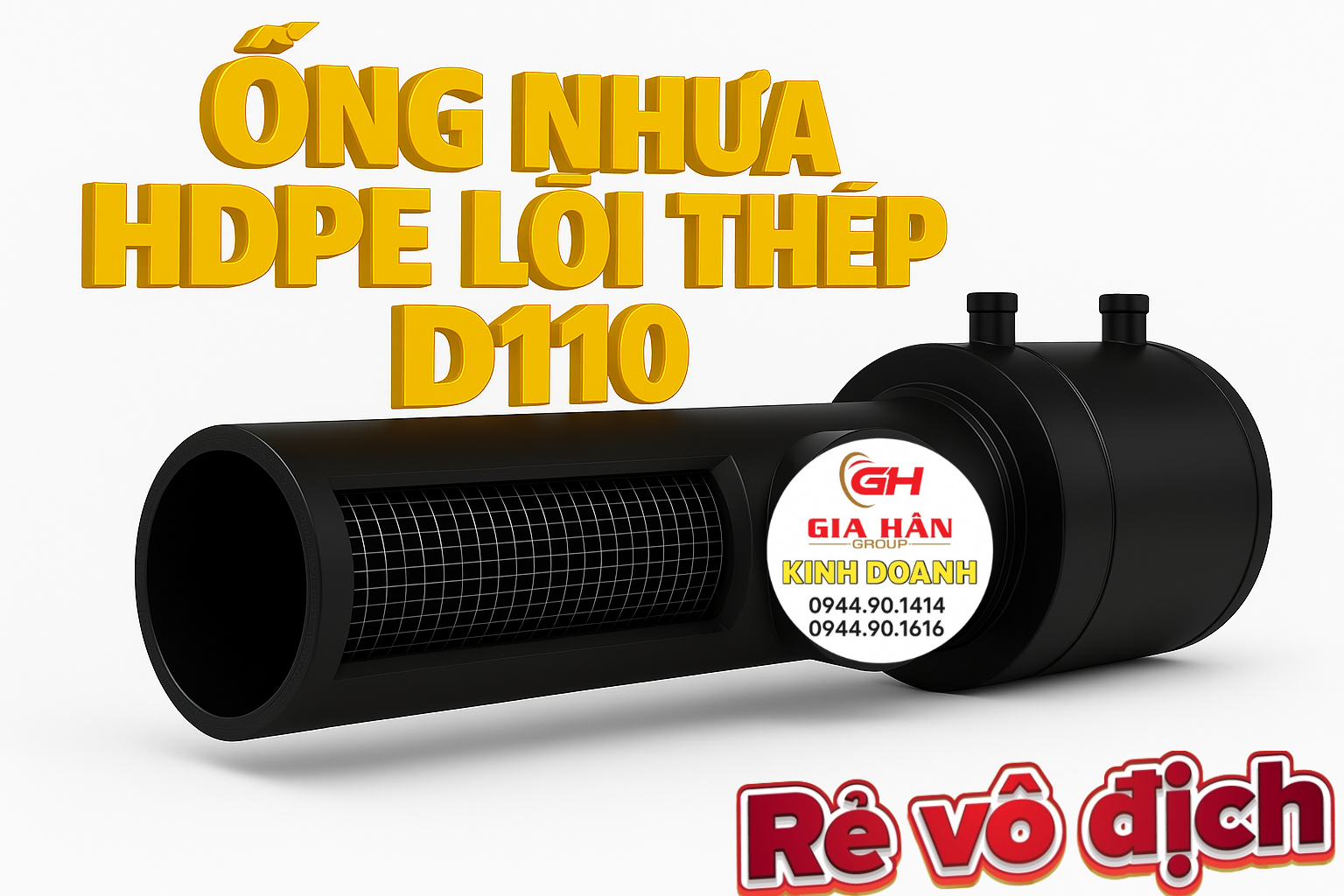 - Ống nhựa HDPE lõi thép D110 (còn gọi là Ống Composite HDPE lõi thép D110) là một loại ống dẫn hiện đại, được cấu tạo từ hai vật liệu chính: lớp nhựa HDPE (High-Density Polyethylene) bên ngoài và một lớp lưới/khung thép carbon xoắn cường lực nằm ở lớp lõi giữa.