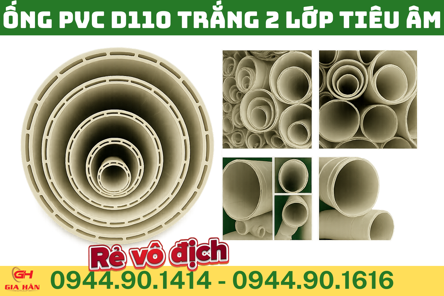 Khu Vực Bán Ống PVC 2 Lớp D110 Tiêu Âm Màu Trắng Của Công Ty Gia Hân Group