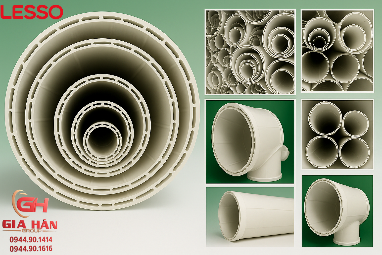 - Cấu trúc này giảm tới 15–20 dB so với ống PVC thông thường — thích hợp cho khu dân cư, khách sạn, bệnh viện, chung cư cao tầng.
