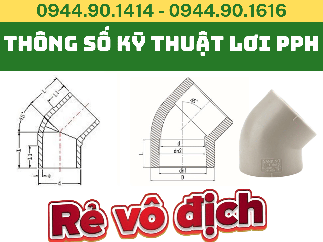 Bảng Quy Cách Lơi 45° Nhựa PPH Sanking
