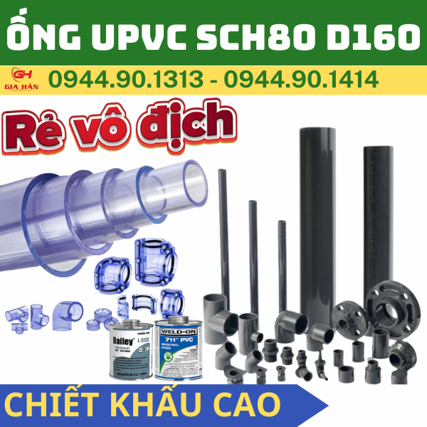 - Ống PVC (Polyvinyl Chloride) là loại ống nhựa được sản xuất từ vật liệu nhựa PVC, nổi tiếng với độ bền hóa học và khả năng chống ăn mòn. Tiêu chuẩn SCH80 (Schedule 80) đề cập đến độ dày thành ống, trong đó SCH80 có thành ống dày hơn so với các tiêu chuẩn khác như SCH40, cho phép ống chịu được áp lực cao hơn.