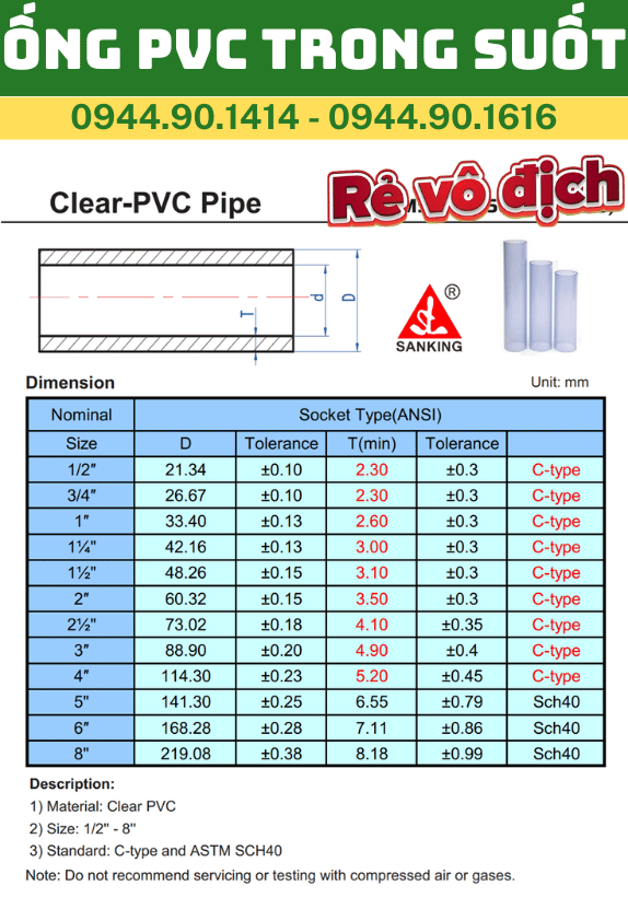 >>>XEM THÊM: Quy Cách Đơn Giá Bán Ống PVC Trong Suốt D60 - Clear PVC Pipe