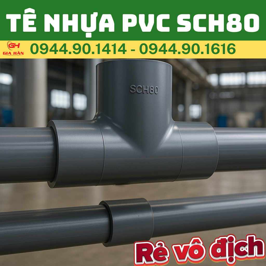 - Độ dày SCH80: Độ dày thành ống lớn hơn (dày nhất trong các loại tê PVC thông dụng) làm tăng cường độ cứng và khả năng chống chịu va đập.