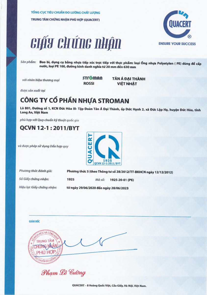 Chứng Nhận Chất Lượng CO, CQ Ống HDPE Stroman