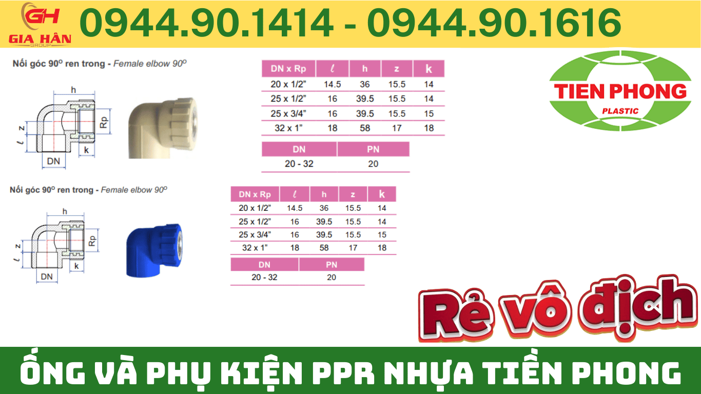 Quy Cách & Kích Thước Co Ren Trong PPR Tiền Phong Phổ Biến