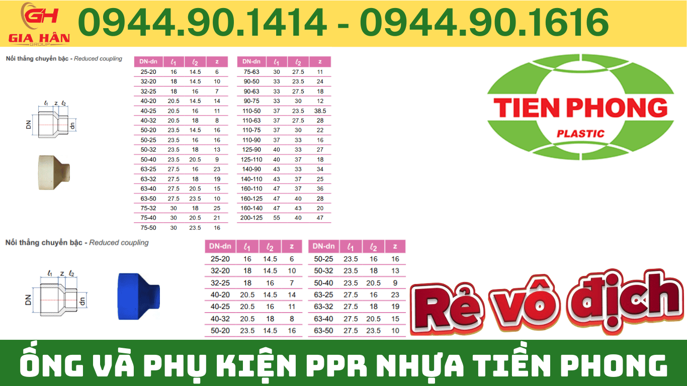 - Để giúp người dùng dễ dàng lên kế hoạch chi phí, dưới đây là bảng giá tham khảo của một số loại nối giảm PPR Tiền Phong.