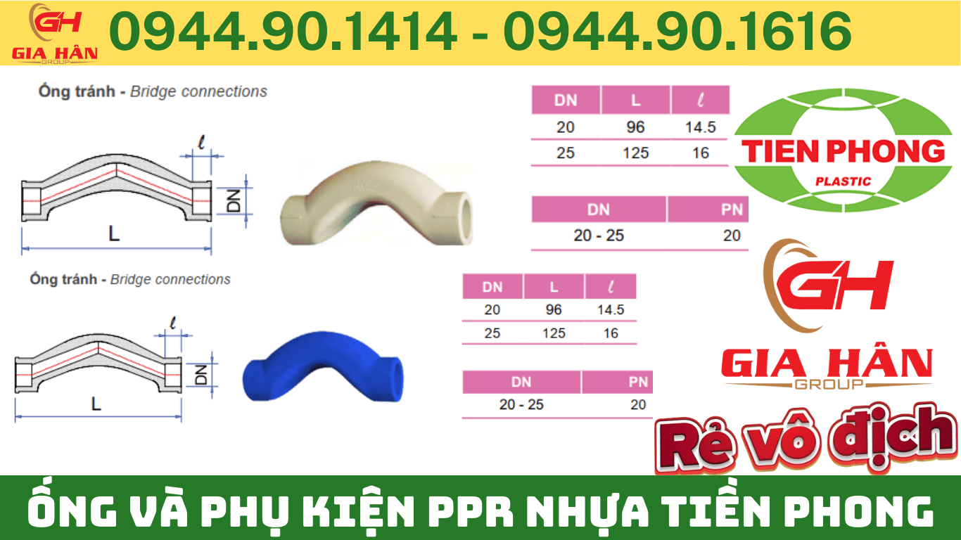 - Ống tránh PPR Tiền Phong là phụ kiện nhựa Polypropylene Random Copolymer (PPR), được thiết kế để giúp các đường ống chính đi xuyên qua nhau một cách gọn gàng, hạn chế va chạm và đảm bảo dòng chảy ổn định. Sản phẩm có khả năng chịu nhiệt, chịu áp lực cao PN20, kích thước đa dạng từ D20 – D25, đạt tiêu chuẩn DIN 8077 và DIN 8078:2008, tuổi thọ trên 50 năm.