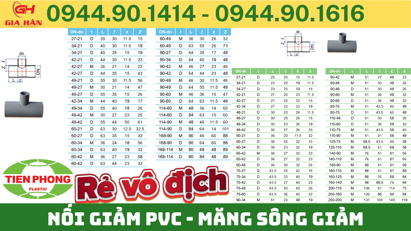 Giá Tê Giảm PVC Tiền Phong Hệ Mét