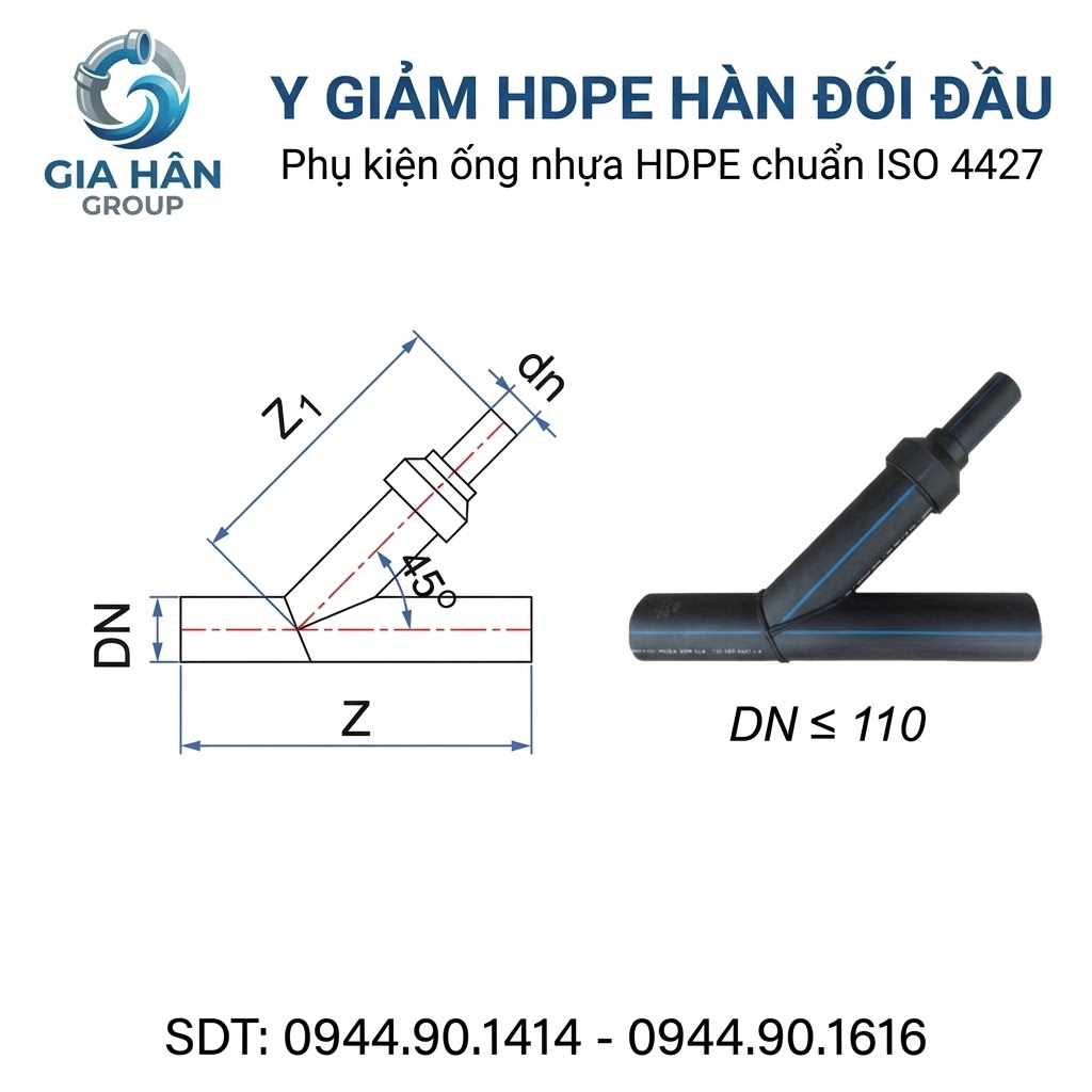 | Y Giảm D355 – D400 + | PE100 | PN12.5 – PN16 | Hàn đối đầu | Dự án công nghiệp, đô thị |