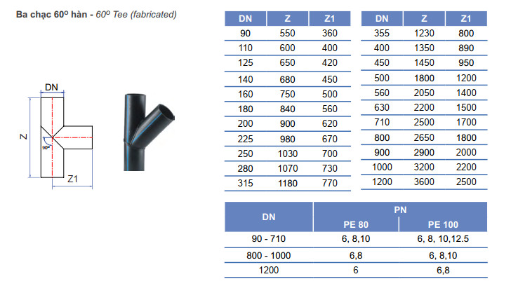 - BẢNG GIÁ Y HDPE HÀN ĐỐI ĐẦU - BA CHẠC 45 - 60 ĐỘ HDPE - CHỮ Y HDPE