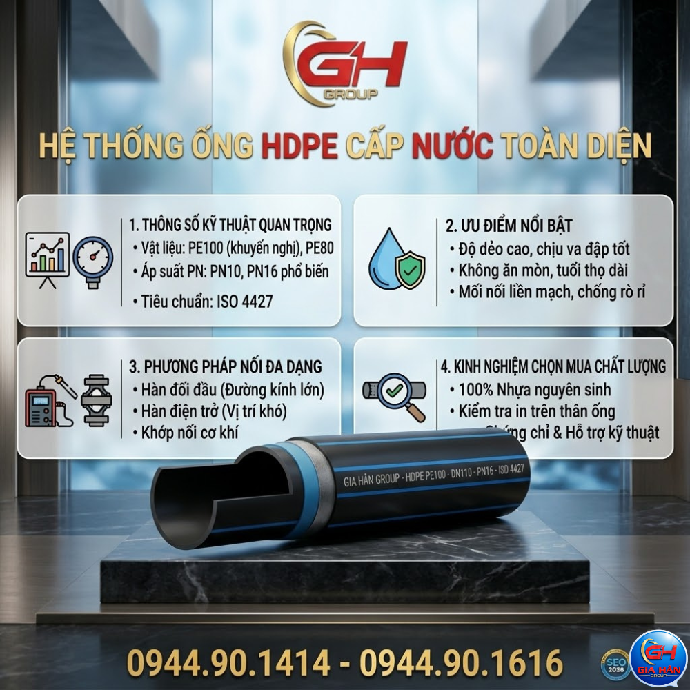 Ống HDPE hệ thống cấp nước là lựa chọn phổ biến trong các công trình dân dụng, đô thị và công nghiệp nhờ độ bền cao, chịu áp lực tốt và an toàn cho nguồn nước sạch. Với đặc tính dẻo, chống ăn mòn và tuổi thọ lâu dài, ống HDPE ngày càng thay thế nhiều vật liệu ống truyền thống.