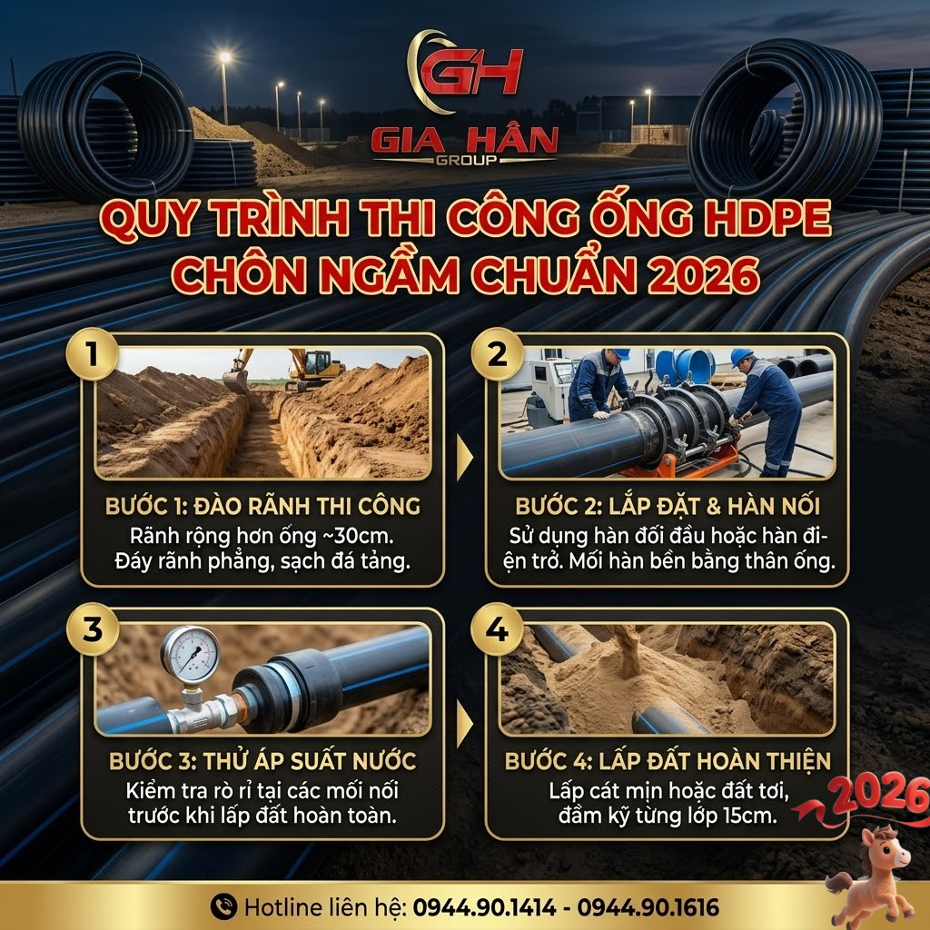 - 4. Quy Trình Thi Công Ống HDPE Chôn Ngầm Chuẩn 2026