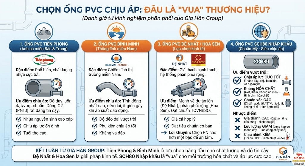 4. Chọn Ống PVC Theo Thương Hiệu: Đâu Là "Vua" Chịu Áp?