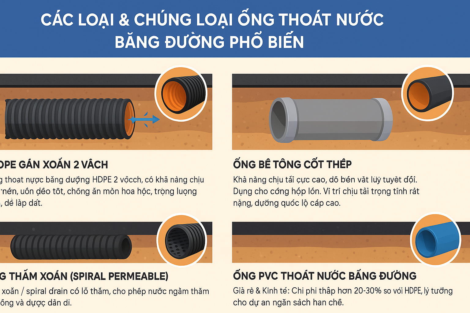 Các Loại & Chủng Loại Ống Thoát Nước Băng Đường Phổ Biến