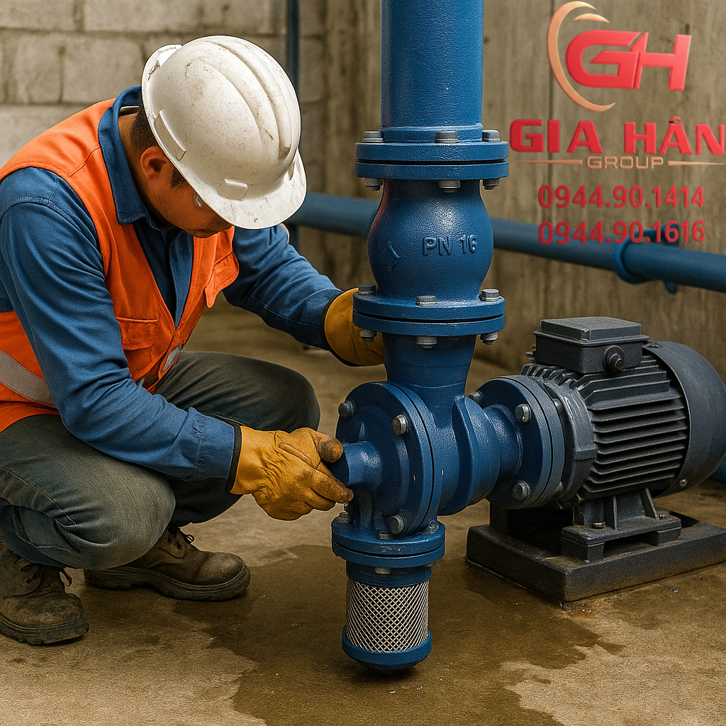 - Trục van & Gioăng làm kín: Đảm bảo đĩa van đóng kín khi máy bơm ngừng hoạt động.